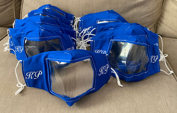 Instructions and pictures showing how to make our fabric mask with a clear panel are posted below.